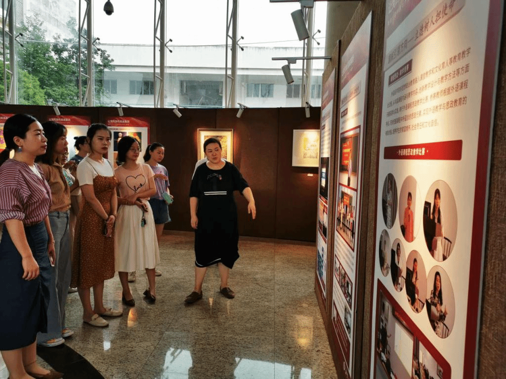 重温入党誓词后,各支部组织党员参观了“让党的旗帜高高飘扬”图文展,集团党委委员李娜作为展览的主要设计人员之一为大家作了细致的讲解,在每一板块前,大家认真聆听、仔细观看。“凝心聚力举旗帜”“铸魂育人守初心”“ 精准扶贫担使命”“ 抗疫一线争先锋”四个板块的内容激励人心,催人奋进,受到了一次很好的教育。大家纷纷表示,要牢记党的初心使命,勇于担当,主动作为,为把学校办得更好、更有特色积极贡献力量。