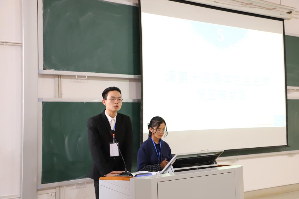大会开始,主持人孙彤老师提出,举办大会的目的在于增强学生干部的凝聚力和团队协作能力,希望团委、学生会成员日后能够实现自我价值,凝聚团队力量。随后,院党总支副书记刘行致辞并宣读成员名单。刘行书记强调,学生会干部首先应该是一名合格的学生,其次才是一名学生干部。团委、学生会成员作为联系学院和同学之间的桥梁与纽带,必须要有真诚奉献的服务意识、勇于担当的责任意识以及全面发展的成才意识,才能更好地服务于学校,学院师生。致辞结束后,书记为团委、学生会全体成员颁发了聘书和工作证。紧接着,团委、学生会各部部长依次上台做就职汇报,介绍各部门成员与工作内容。在会议的最后,由集团第十四届学生会主席倪正皓发言。他表示,作为学生干部一定要做到有担当、有责任、有信念,成为一个敢为人先、不断奋进、勇于开拓的先驱者。