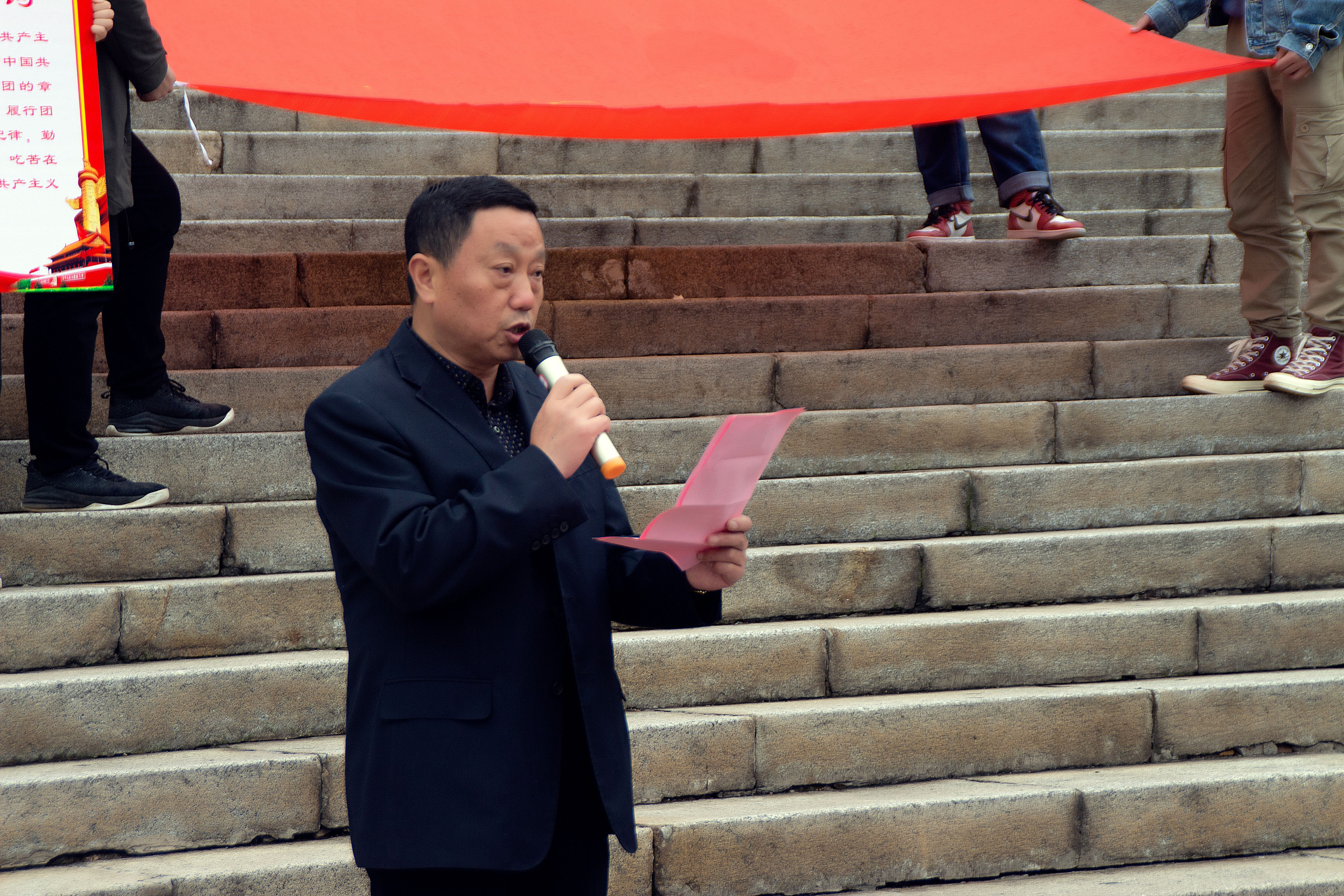 4月30日中午12:30,yl23411永利集团官网为纪念五四运动100周年,在“1958”雕塑前举办“青春心向党·建功新时代”主题团日活动。出席此次活动的嘉宾有:yl23411永利集团官网党总支书记周维平、团委书记魏莎、学院专职组织员谭乔红、辅导员老师刘林,党总支副书记刘行主持此次团日活动。学院学生党员代表、团校学员、发展对象培训班学员、入党积极分子培训班学员以及优秀团员代表参加此次团日活动。