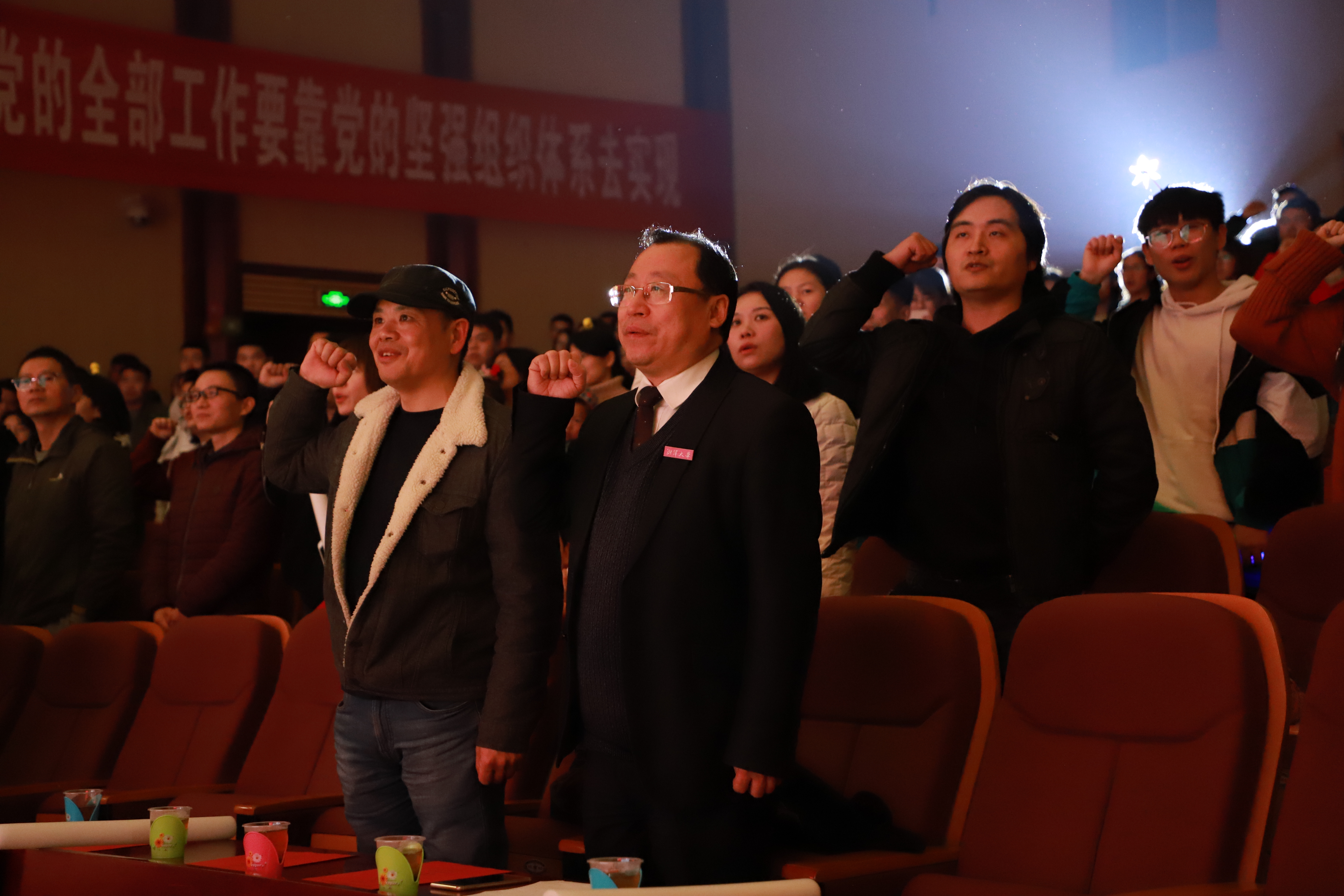 演出以充满激情的乐队表演开场,动感的音乐,精彩的演奏激起了全场的热情,现场观众热情高涨。充满未来科技感的荧光舞《Now You See Me》让同学们眼前一亮,黎青院长带领研究生的精彩亮相也让同学们感到惊喜不已。节目之后黎青院长对同学们送上真挚的祝福:“这次18级新生使我耳目一新,我觉得这次表演是值得的,祝大家双十一快乐!”古风舞蹈《寄明月》灵动优美的舞姿配上活泼悦耳的音乐让人感到心旷神怡。由罗豪畅副院长带领研究生的国画合唱节目《明月几时有》更是让观众们感受到中国山水的优美与磅礴大气。同时罗院长对同学们送上祝福:“在大学里学习愉快、生活愉快,在接下来的日子里希望同学们找到学习目标,学业有成!”一段舞蹈串烧《new skr time》,同学们时而欢脱时而优雅的舞蹈瞬间引爆全场,欢呼声呐喊声尖叫声连成片。革命先烈故事《惜芳华》把观众的思绪再次带回了那个战火纷飞的年代,缅怀先烈,铭记历史。由周书记代领同学们重温誓词,坚定的誓言在大厅回荡。一首《艺起》引起了在场同学们的强烈共鸣,这是yl23411永利集团官网院胡雪莉、曾楷源以及芮苗博同学共同作词,谱写的yl23411永利集团官网版《成都》。