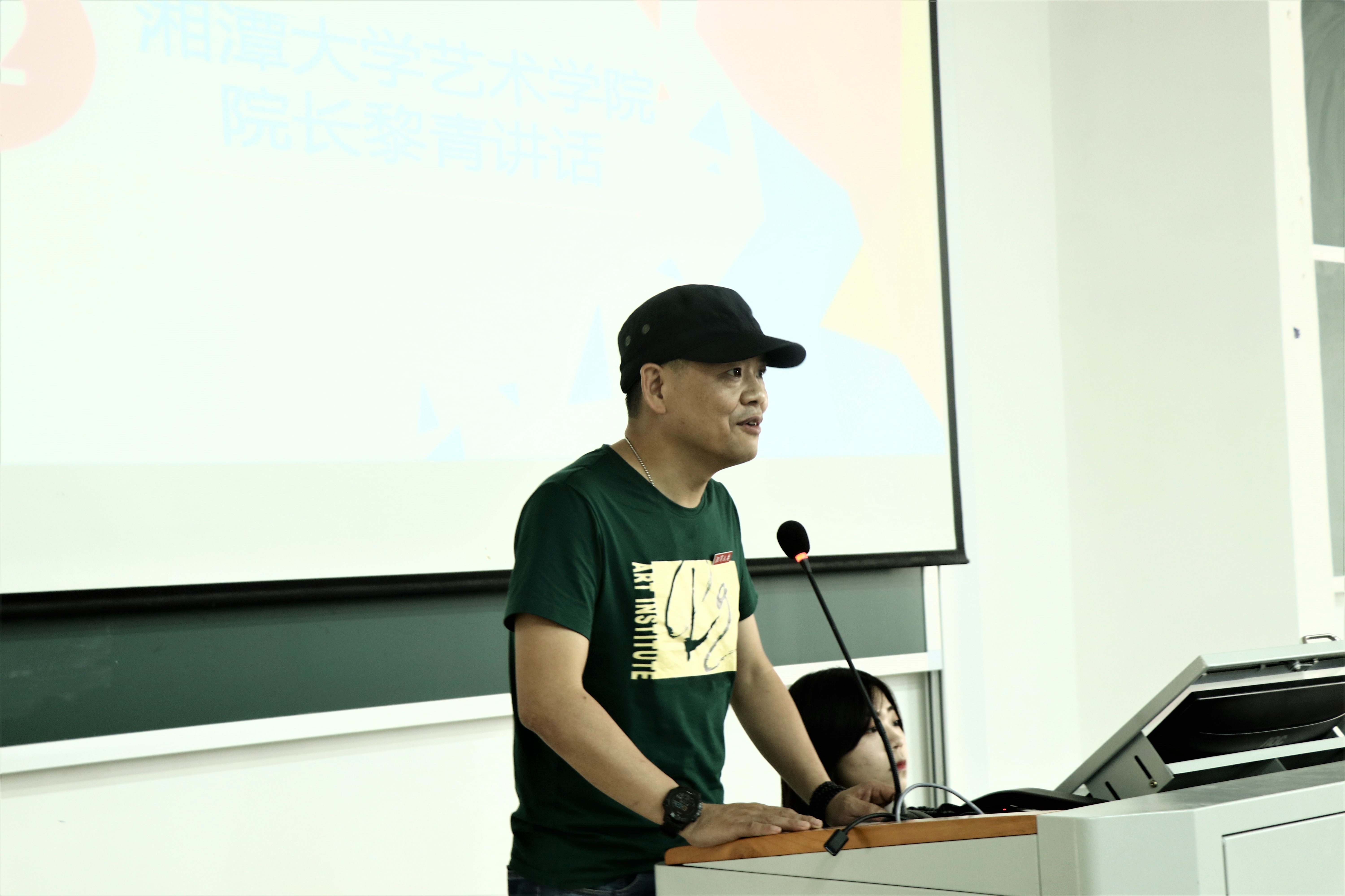 开学典礼以全体奏唱国歌作为开场,让新生感受到了开学典礼的庄重和严肃。院长黎青对新生说:“作为一名艺术生,我们要学会利用某一种方式通过一定的物质基础去创造人们可以感知的艺术形态,我们创造出来的艺术精神会是永恒的,艺术不仅仅是漂亮的外观,能够直击人心灵的才是艺术。希望18级新生把湘大当作一个新的起点,带着自己的梦想,树立好自己的方向,能够在这里真正学到对自己有益的知识。