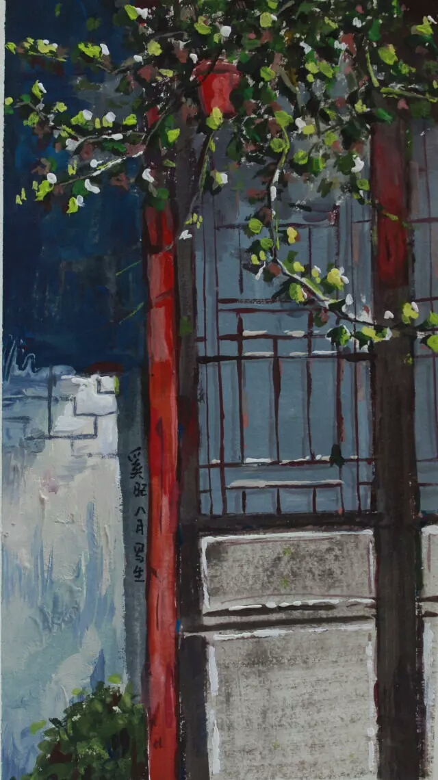 2016级视觉传达设计一班姚金秀同学说:“我创作的作品《老屋》源自于想表达农民生活的改变。这个老屋现在虽然没有人居住,它原有的主人已经在老屋的对面砌起了新楼,老屋还完整的保留着,老屋主人说‘党的政策好,人民富裕了,我们过上了幸福生活,村上干部能干,村民一心向着新生活,都挺来劲,生活有了大改变,所以老屋就没住了。但老屋是祖宗留下来的财富,我们任然保留下来。’我想用画笔做一个记录,来宣传我们社会主义新农村发生的巨大变化,展示新农村的美好生活。”