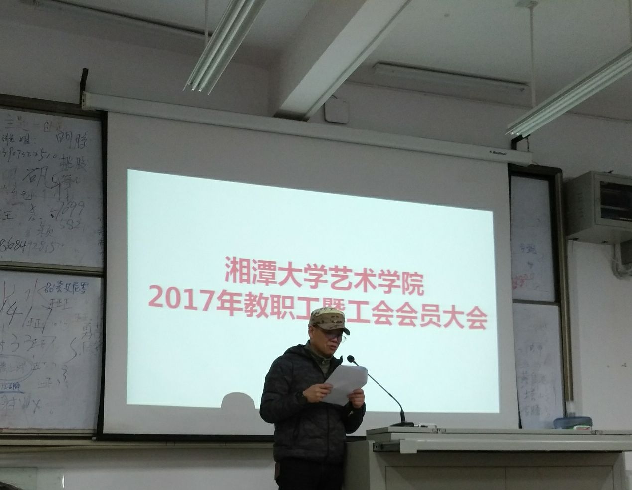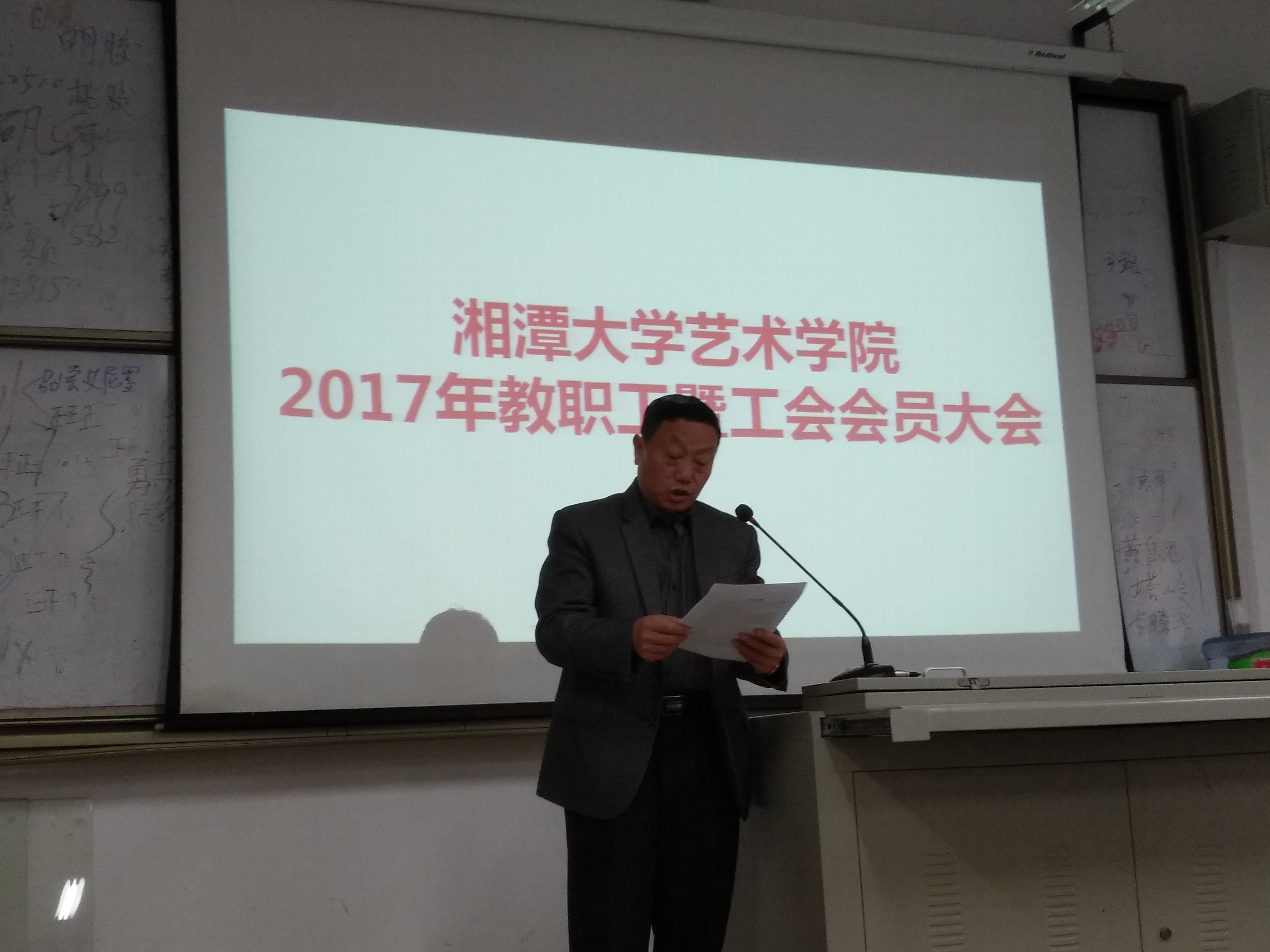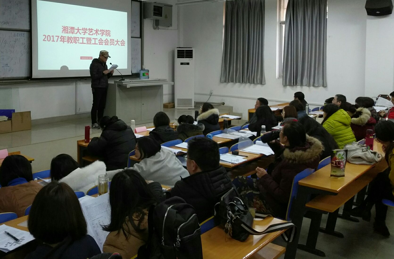 2018 年1月12日,yl23411永利集团官网2017 年教职工大会暨工会会员大会在yl23411永利集团官网A106举行。yl23411永利集团官网全体教职工参加本次大会。本次大会为期一天,会议由yl23411永利集团官网党总支书记周维平主持。