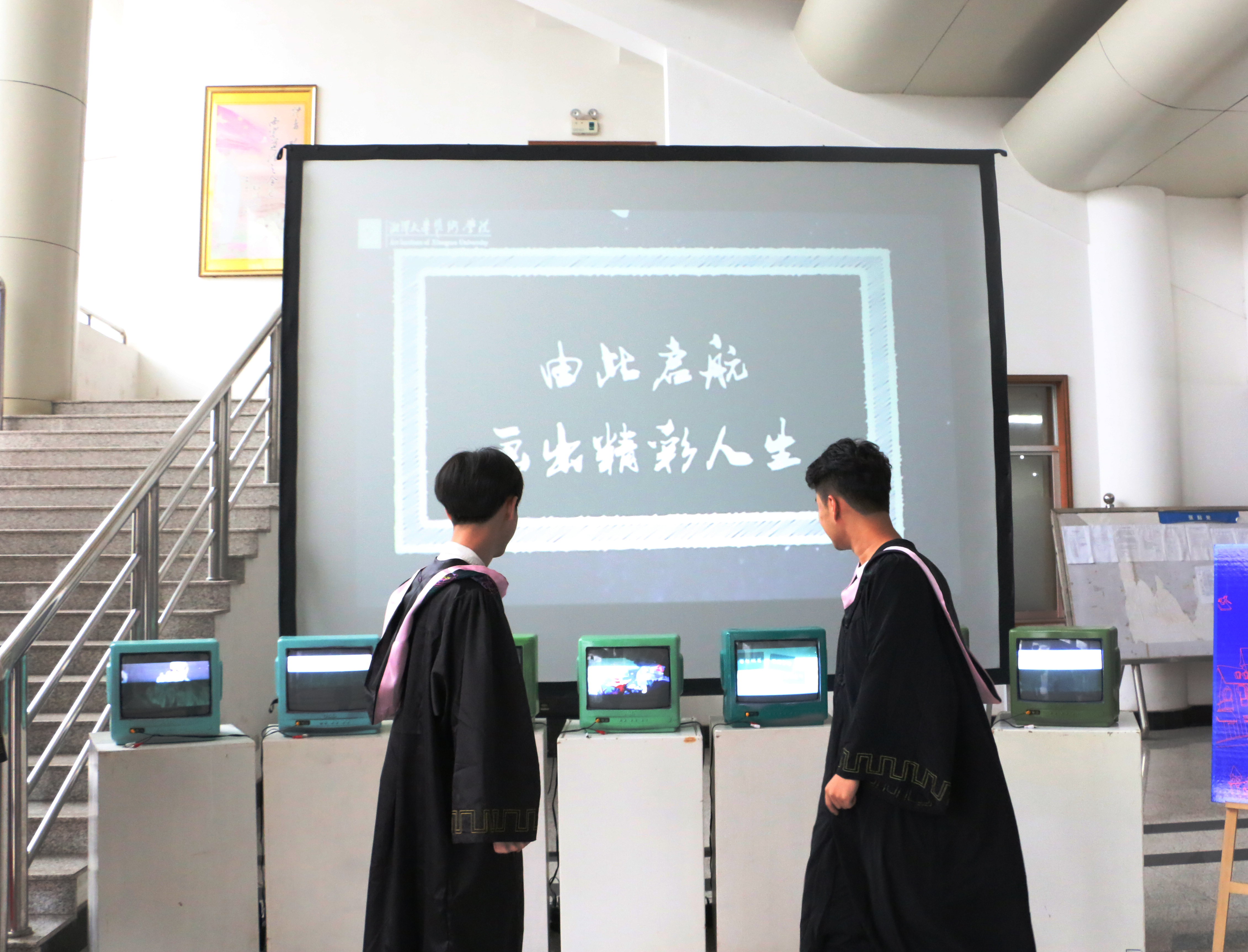 进入体育馆一楼大厅,首先进入大家眼帘的是yl23411永利集团官网的部分优秀毕业作品。为了让参加学位授予仪式的同学能在这里耐心等候,学生工作部处和yl23411永利集团官网共同精心设计了这个展厅。公共管理学院的硕士毕业生杨文说:“学校的精心安排叫我们非常感动,为了欢送毕业生,学校组织开展了很多活动。我们观看了毕业生招待电影,参加了热烈的毕业晚会等一系列活动。这时站在这个设计得温馨而又富有创意的展厅,观看我们毕业生自己设计的作品,这让我们感到很自豪,很温馨,很留念。”