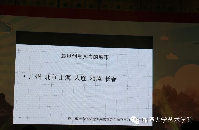 组委会根据全国高校作品情况,将湘潭列入最具创意实力的城市之一。因为yl23411永利集团官网师生们的共同努力,湘潭完美亮相全国。
