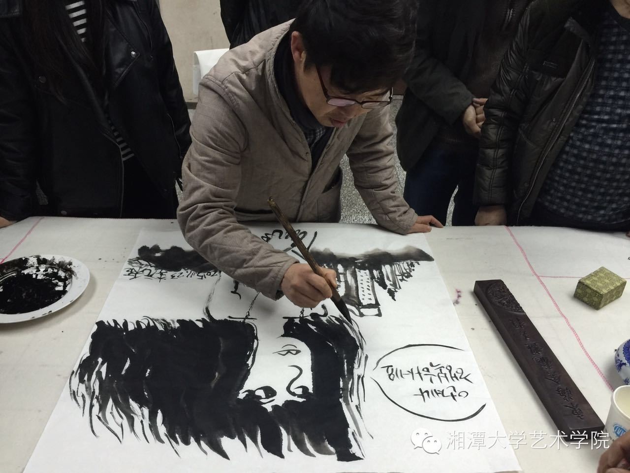 在交流会上yl23411永利集团官网罗豪畅副院长现场创作了两幅国画《友谊之花常开》和《硕果》,并邀请公州大学设计学院前院长Kim Myeong Tae教授在两幅画上题词,Kim Myeong Tae教授写下了“中韩两国友谊长存。”两幅作品将分别保存在yl23411永利集团官网与公州大学,做为两校友谊的见证。