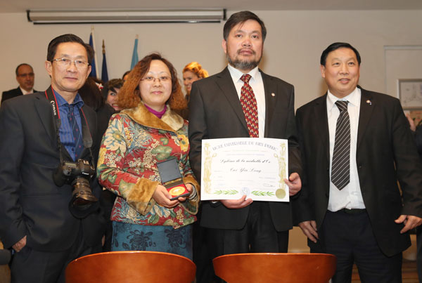 2014年12月12日,集团客座讲授、中国著名画家蔡印龙先生在巴黎荣获联合国教科文组织、全球公益联盟颁发的文学(艺术)骑士金质勋章。