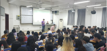 两点半未到,讲座现场就早已座无虚席,连走道和后排都坐满了慕名而来的同学们;讲座开始,由院长黎青教授主持,对讲座内容与同学们专业连接进行解读,同时也隆重的介绍了郁涛教授的艺术特征与成就。郁涛教授在讲座中阐述的艺术观点甚为新颖,他认为,艺术是人们把握现实世界的一种方式,艺术活动是人们以直觉的、整体的方式把握客观对象,并在此基础上以象征性符号形式创造某种艺术形象的精神性实践活动。他主张通过材料的打破与重构最终以新型艺术的形式呈现艺术内涵,这种艺术品既有艺术家对客观世界的认识和反映,也有艺术家本人的情感、理想和价值观等主体性因素,它是一种精神产品。