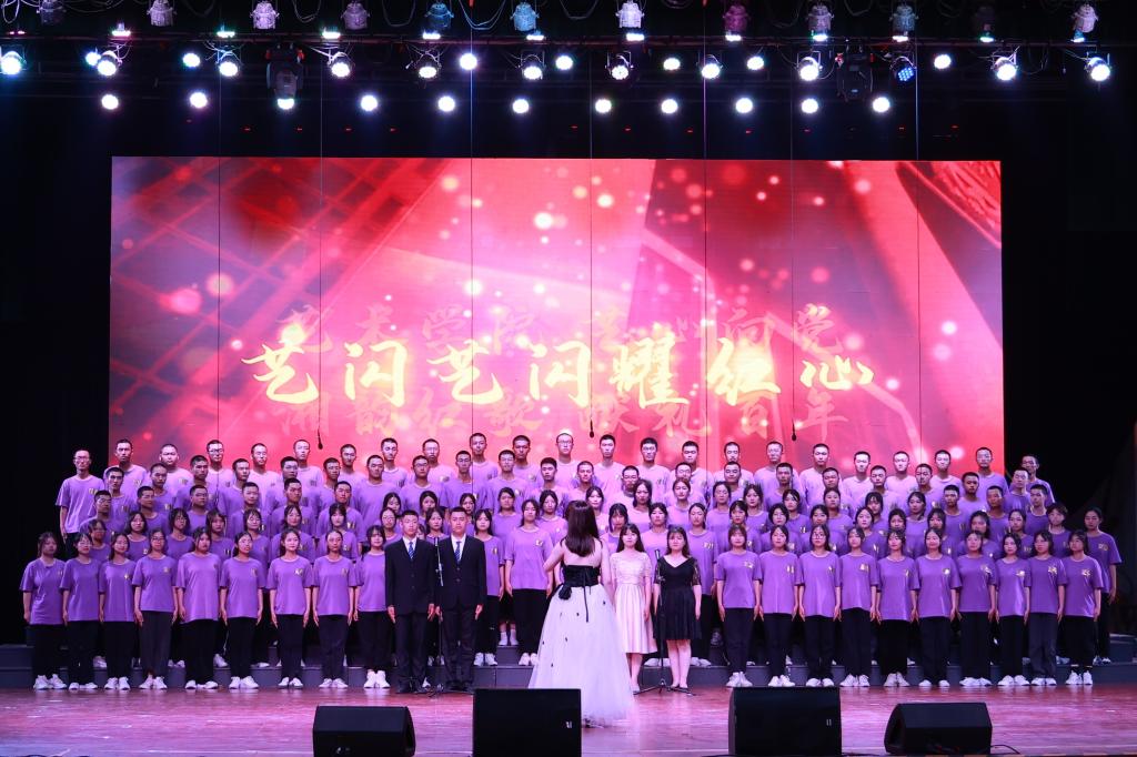 10月5日晚上7点,yl23411永利集团官网庆祝中国共产党成立一百周年“唱支歌儿给党听”2021级新生百人大合唱在学校大礼堂举行。经过一周时间的精心准备,艺术学院2021级新生带来的歌曲《新的天地》以绝美的舞台呈现荣获百人大合唱二等奖
