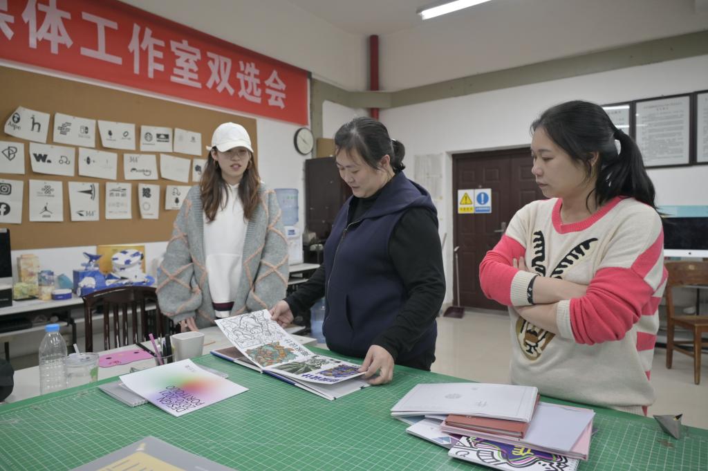 在面试的过程中,老师引导式的发问迅速消除了学生的紧张感,在考察学生专业能力的同时将思想教育有机结合起来。“我们希望,每一个从工作室走出去的学子都能够树立起坚定的文化信仰,作为未来参与祖国经济文化建设的一份子,深刻认识到自身担负的历史责任是十分重要也十分必要的。”设计文化应用工作室的黄准老师这样说。双选会不仅仅是对学生专业方向的一次系统性指导,更是把学生的思想状况摸底摸透的重要举措。短短的一个下午,许多同学向老师敞开心扉,表达了自己的艺术观和创作理念。