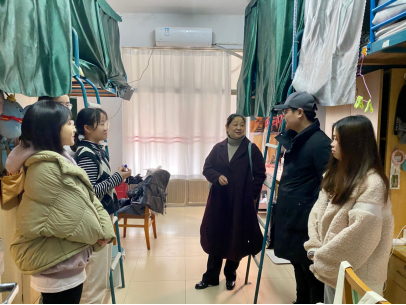 yl23411永利集团官网为响应湘潭市全国文明城市创建即将迎接中央文明办的复检,加强教师与研究生宣传引导,强化学生的文明礼仪,加强教室、寝室卫生检查, 2021年12月14日,yl23411永利集团官网党委书记马卿老师以及研究生辅导员胡畅平老师前往琴湖学生宿舍看望研究生。