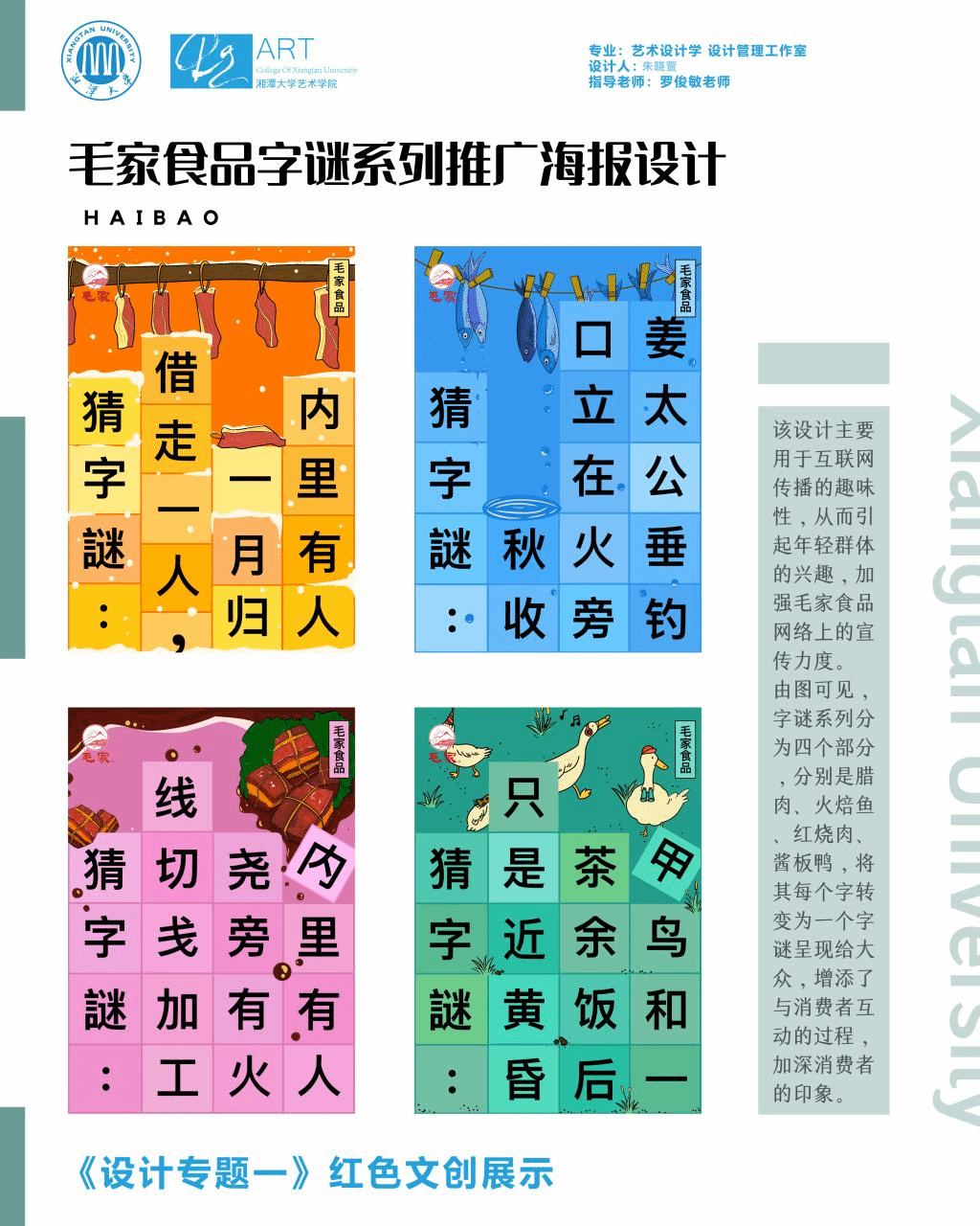 “如何实现艺术设计专业的课程思政转换,是近年来我与学院其他老师在研究的方向,设计创意的过程就是大学生心中红色资源价值内化的过程,通过设计创意促进价值内化,产学研一体化促进红色基因的传承”。课程负责人yl23411永利集团官网罗俊敏老师说。本次《设计专题一》课程改革,是罗俊敏老师湖南省教育改革课题《传承红色基因思政教育引进下的艺术设计专业人才创新性培训模式研究》的重要成果。