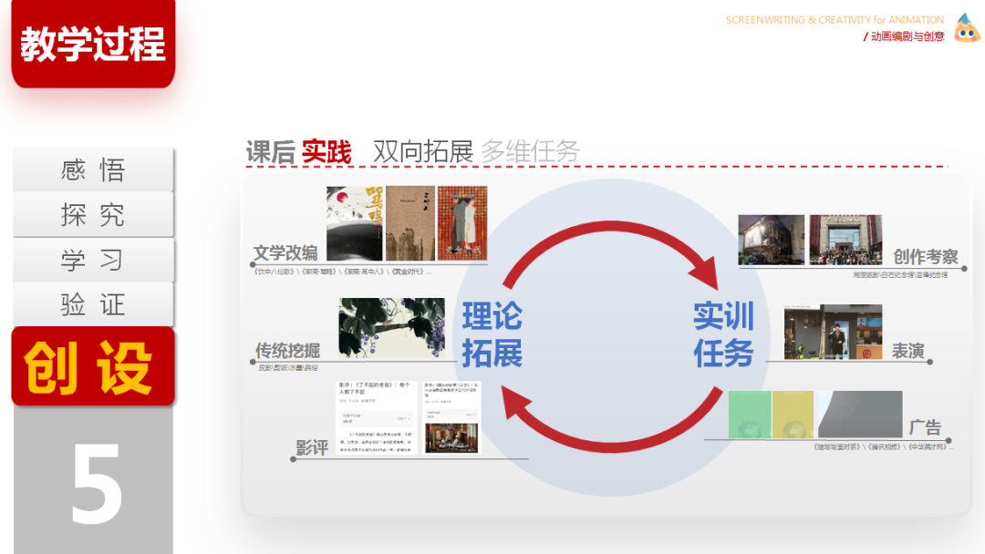 带着这些问题,我以课程思政的“为何和何为”作为《动画编剧与创意》课程教学设计的逻辑起点,从专业角度、课程角度、学生角度以及知识点角度反复思考,为始终将“入味”“入微”贯穿于本课程的教学设计之中,我与课程团队进行走访调查,精准锁定课程价值:动画专业如何培养高质量创新人才?如何引导学生产出高质量的动画精品?又如何让具有中国精神的动漫产品更高质量地在国内外传播?随着“动画编剧”教学现状调查的深入,发现当前学情出现深与浅、广与散、理论与实践的三重矛盾。为此制定了“科学化”、“结构化”、“体验化”三大教学原则。
