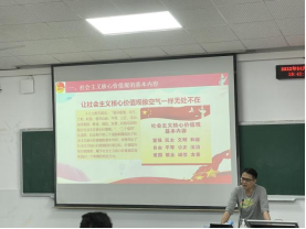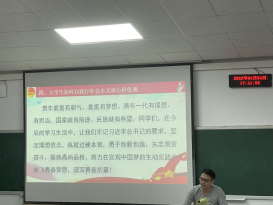 数学与计算科学学院党委副书记、分党校副校长田坤通过社会主义价值观的基本内容、时代背景,对大学生的重要意义以及大学生如何践行社会主义核心价值观四个部分展开叙述。田书记解释了什么是社会主义核心价值观和体系,点明了两者的关系。紧接着强调了社主义核心价值观对大学生成长成才和全面发展以及实现中华民族伟大复兴的重要意义;提出青年是祖国的未来、民族的希望,青年大学生则是实现中华民族伟大复兴中国梦的“生力军”。田书记强调,对于大学生而言,就是要切实做到勤学、修德、明辨、笃实,使社会主义核心价值观成为一言一行的基本遵循。