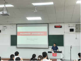 马克思主义学院党委常务副书记张佑祥就树立正确党史观反对历史虚无主义进行授课。张书记通过三问——什么是正确的党史观、什么是历史虚无主义、如何树立正确党史观反对历史虚无主义进行讲解。张书记强调,当代大学生应该加强历史唯物主义学习,增强理论自觉、方法自觉,准确把握党史发展的主题主线主流本质、要正本清源激浊扬清,旗帜鲜明反对历史虚无主义。