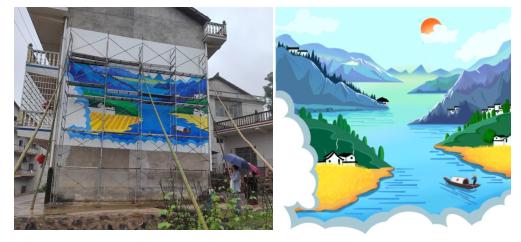 艺术共情人民,设计美化乡村。2022年5月,yl23411永利集团官网教师胡畅平带领学生,以艺术共情+乡村振兴为主题,完成了涟源市白马镇的乡村美化公益墙绘项目。