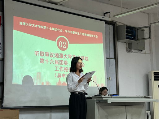 此次大会在庄严的国歌中开始。大会听取审议了第十六届团委、学生会工作报和第十七届团代会提案工作报告,主席吴丰羽房德松总结了团委、学生会上一学年的工作情况,肯定了团委、学生会的日常工作,但也指出了本届学生会的不足。他们指出:“团委学生会的工作要更加积极,各部门之间的合作需要加深,学生会成员的态度要端正。”