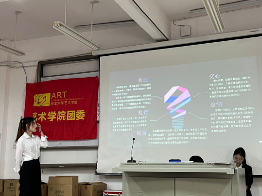 大会最后,艺术学院党委书记管胜昔老师对团委、学生会的所有成员说到“在接下来的时间里,yl23411永利集团官网团委学生会要团结一心,各位学生干部要尽职尽责管书记提出,学生干部要强化责任意识、身份意识、奉献意识等六个意识,做好大学生表率。