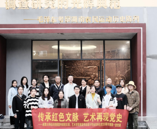 (刘林、白芳婷 ) 3月8日下午,yl23411永利集团官网机关党委宣传部党支部与yl23411永利集团官网视觉传达设计本科生党支部组织结对共建活动,赴韶山市银田镇开展“传承红色文脉,艺术再现党史”的实地考察学习活动,同时也是新学期党员同志们第一堂党课。yl23411永利集团官网机关党委宣传部党支部党员与yl23411永利集团官网视觉传达设计本科生党支部党员参与了此次活动。
