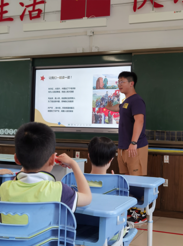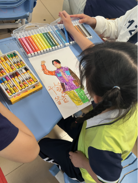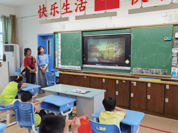 为更好贴近小朋友,同学们化身“西瓜哥哥”“大海哥哥”“樱桃姐姐”与小朋友亲切互动。教小朋友写名字,鼓励小朋友在美术上大胆创作,引导小朋友从党史故事、祖国航天发展中汲取力量,茁壮成长。